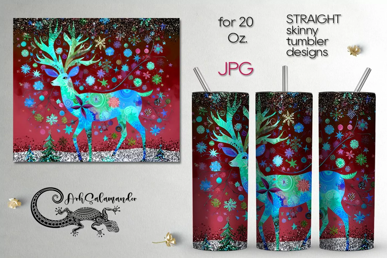 Create amazing sublimation crafts with beautiful Folk xmas Deer | Skinny tumbler sublimation design PLUS7, JPG. This design is perfect for sublimation Straight Skinny tumbler 20 Oz. You can add your own text or just use it as a ready-made design.