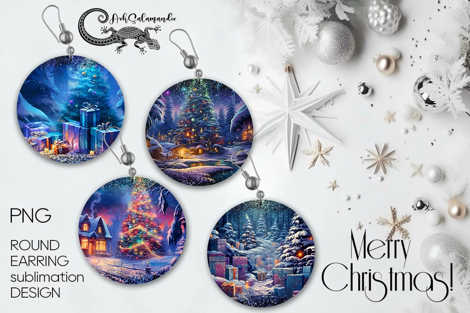 Create amazing sublimation crafts with beautiful Futuristic Xmas | round earring Sublimation design PLUS2, PNG