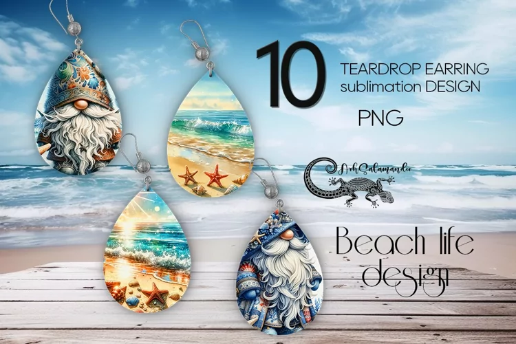 Create amazing sublimation crafts with beautiful Gnome BeachLife | 10 Teardrop earring Sublimation designs, PNG