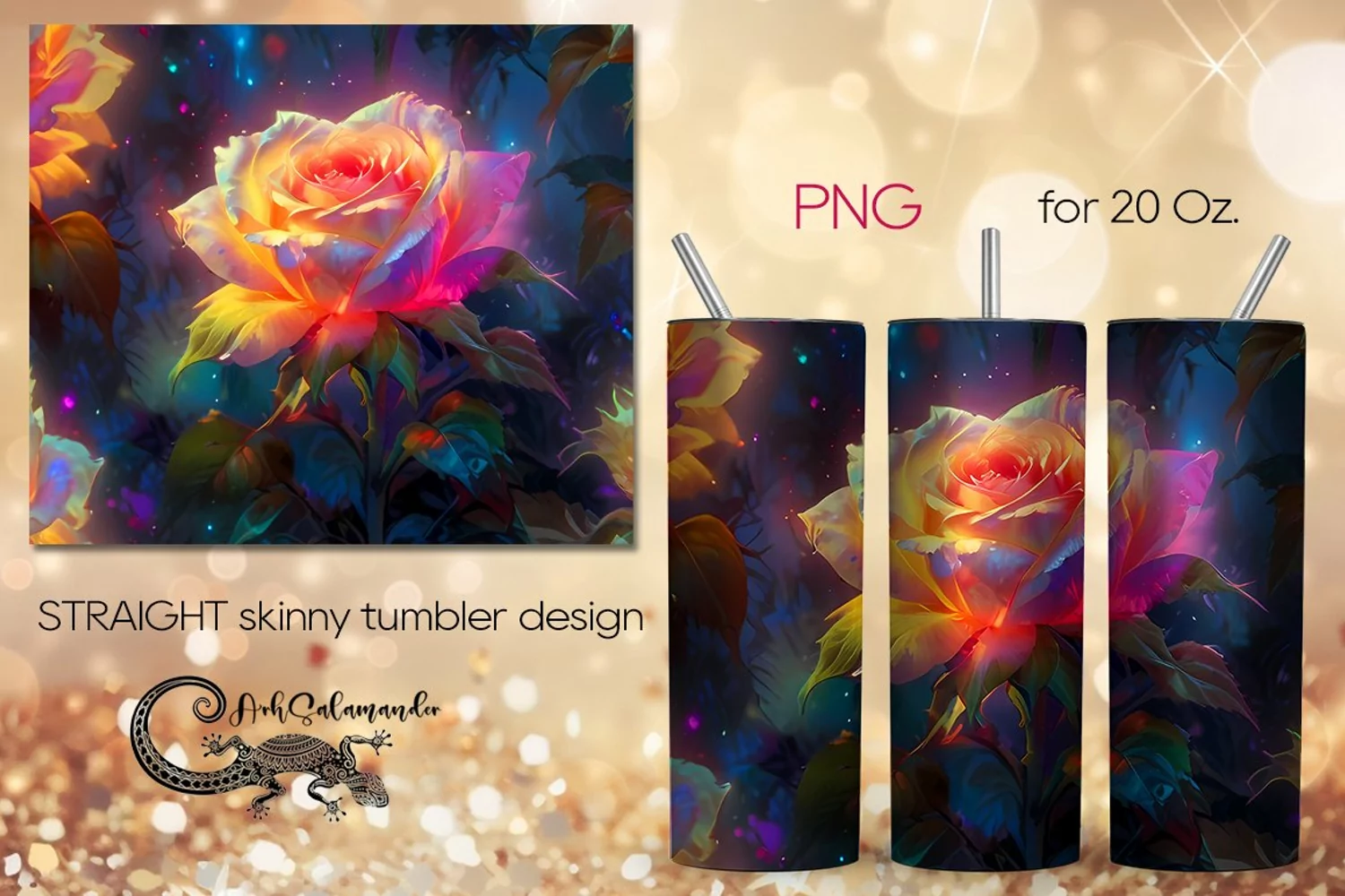 Create amazing sublimation crafts with beautiful Neon rose | Skinny tumbler Sublimation design PLUS, PNG. This design is perfect for sublimation Straight Skinny tumbler 20 Oz. You can add your own text or just use it as a ready-made design.