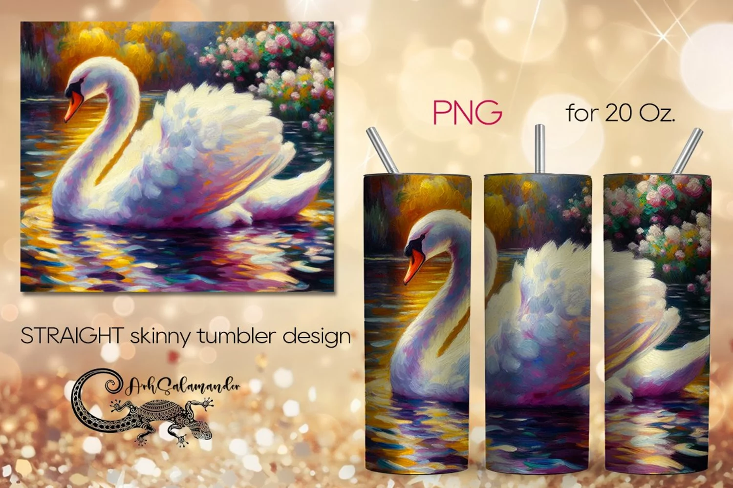 Create amazing sublimation crafts with beautiful Swan | impressiomism skinny tumbler Sublimation design PLUS, PNG. This design is perfect for sublimation Straight Skinny tumbler 20 Oz. You can add your own text or just use it as a ready-made design.