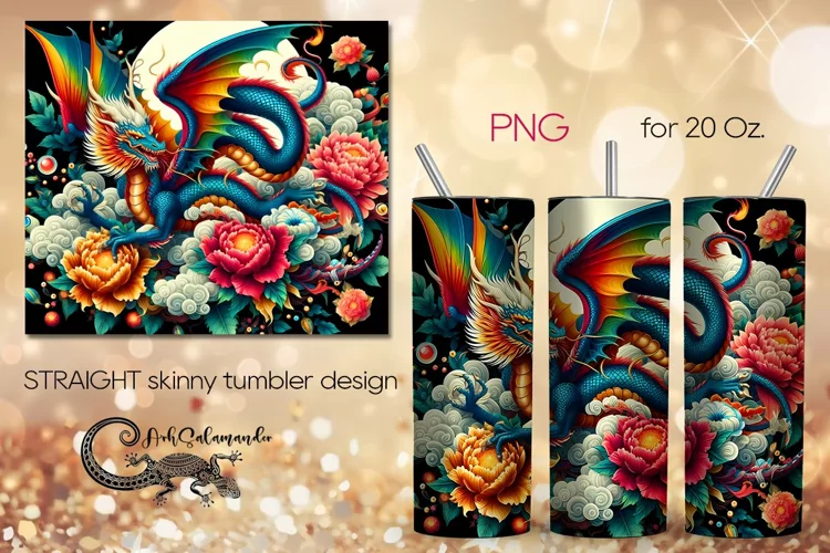 Create amazing sublimation crafts with beautiful Chinese dragon | Skinny tumbler sublimation design PLUS, PNG. This design is perfect for sublimation Straight Skinny tumbler 20 Oz. You can add your own text or just use it as a ready-made design.