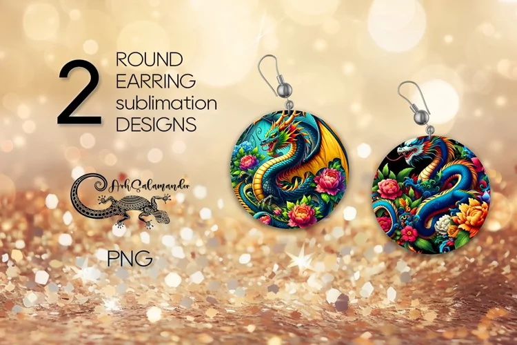 Create amazing sublimation crafts with beautiful Chinese Dragon | Round earring magic Sublimation design PLUS, PNG