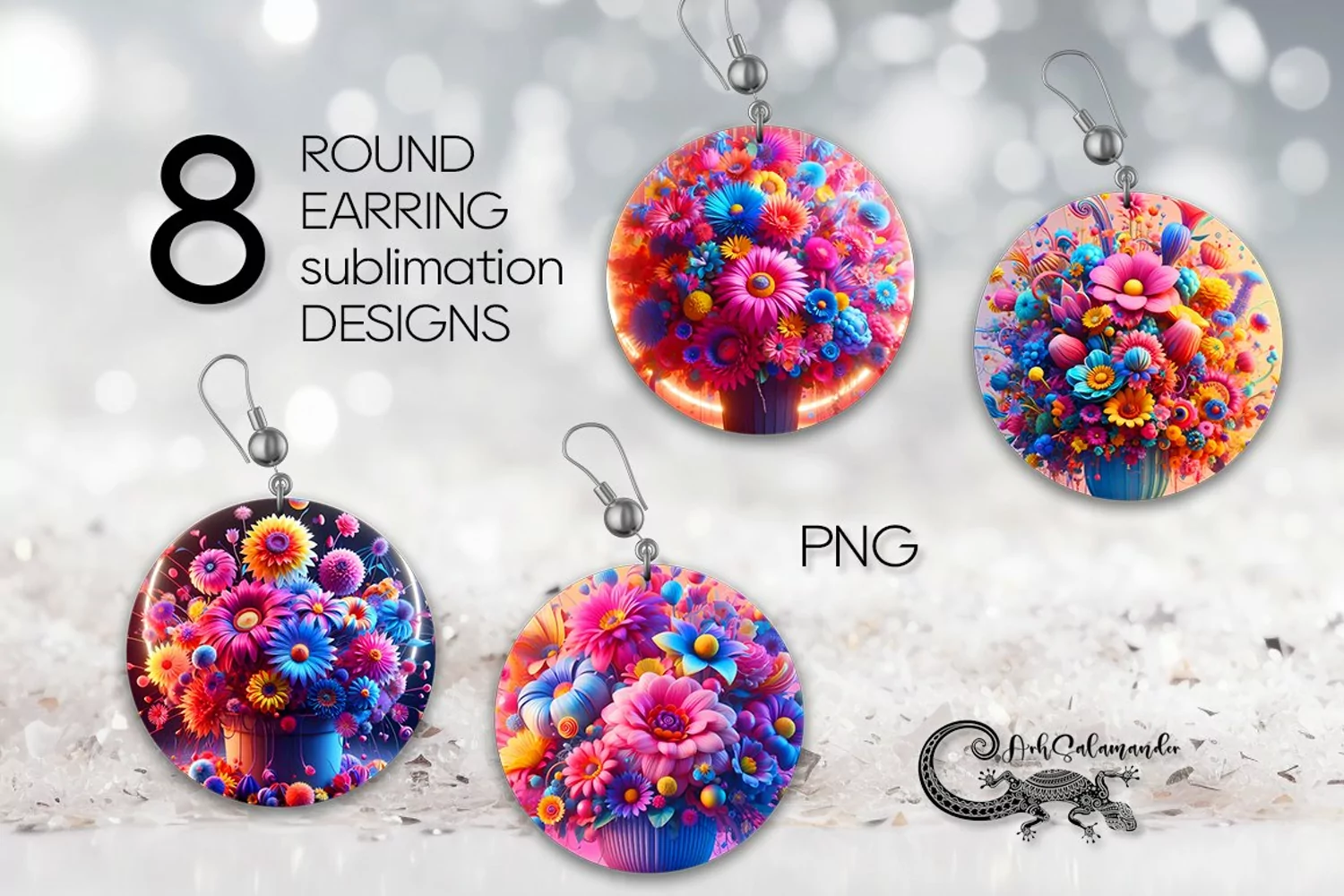 Create amazing sublimation crafts with beautiful Fantasy flowers | 8 Round earring Sublimation designs, PNG