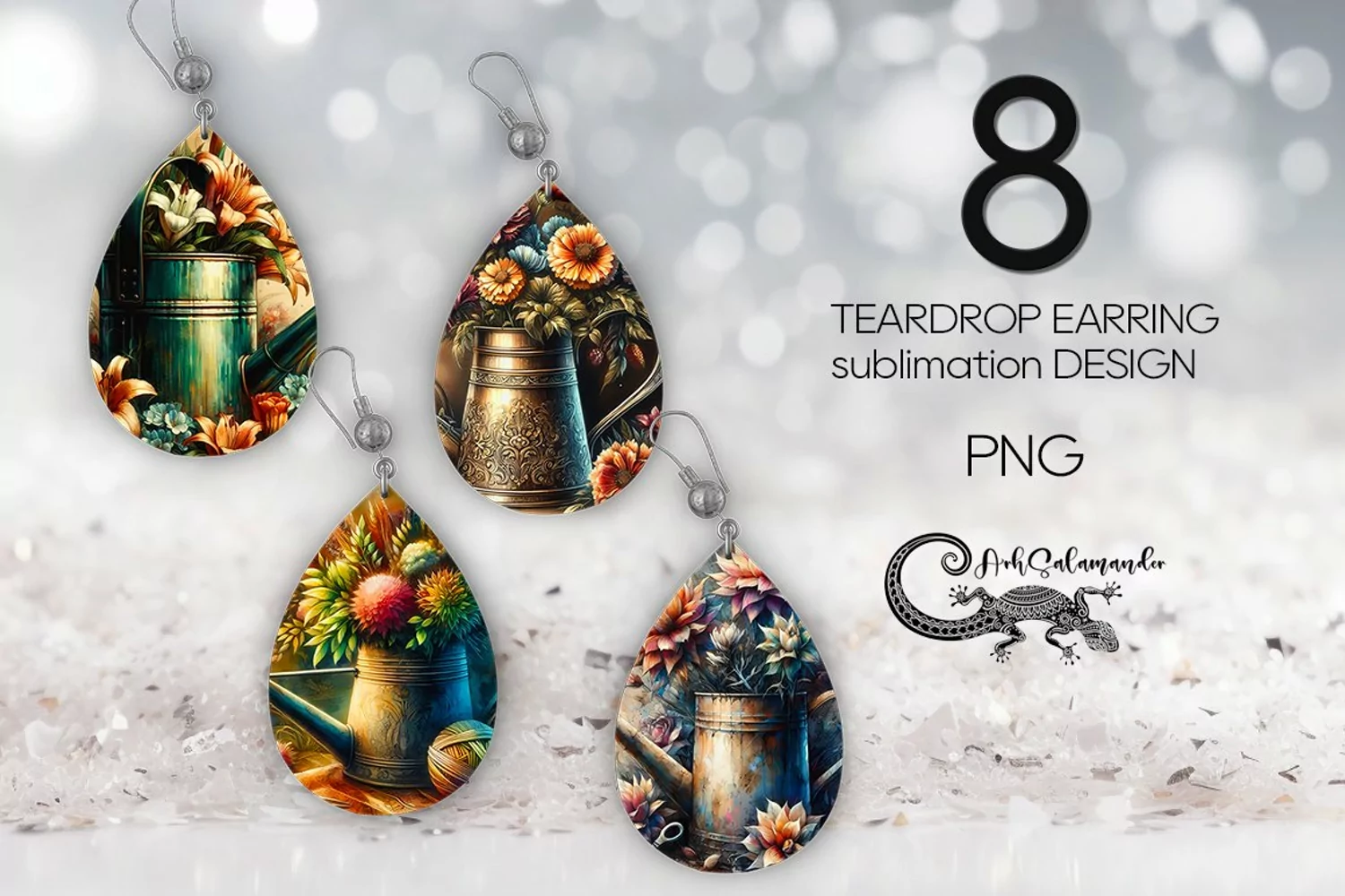 Create amazing sublimation crafts with beautiful Garden composition | 8 Teardrop Earring sublimation designs, PNG