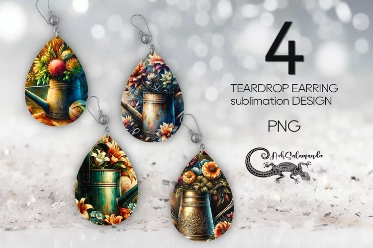 Create amazing sublimation crafts with beautiful Garden composition | Teardrop Earring sublimation design PL, PNG