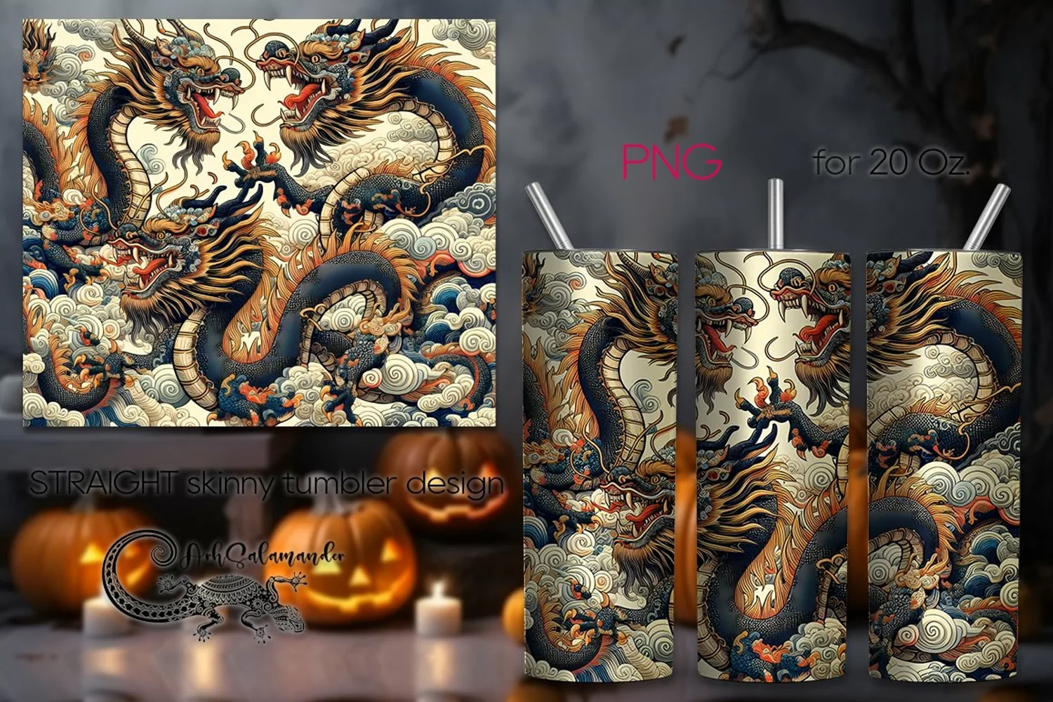Create amazing sublimation crafts with beautiful Chinese dragon | Retro Skinny tumbler sublimation design PL, PNG. This design is perfect for sublimation Straight Skinny tumbler 20 Oz. You can add your own text or just use it as a ready-made design.