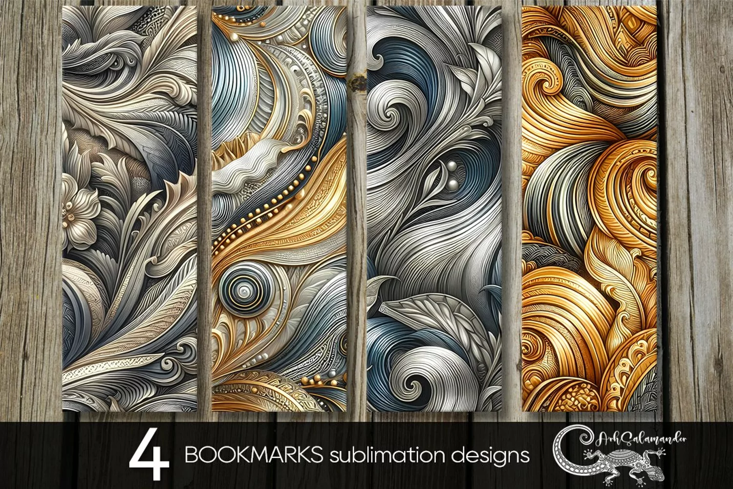 Metallic gold & silver | 4 bookmarks sublimation designs PL2 example image 1