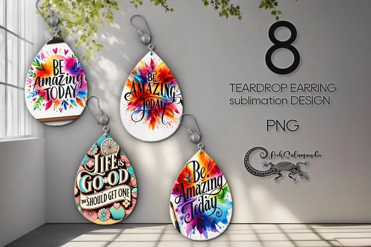 Create amazing sublimation crafts with beautiful Boho inscription | 8 Teardrop Earring sublimation designs.