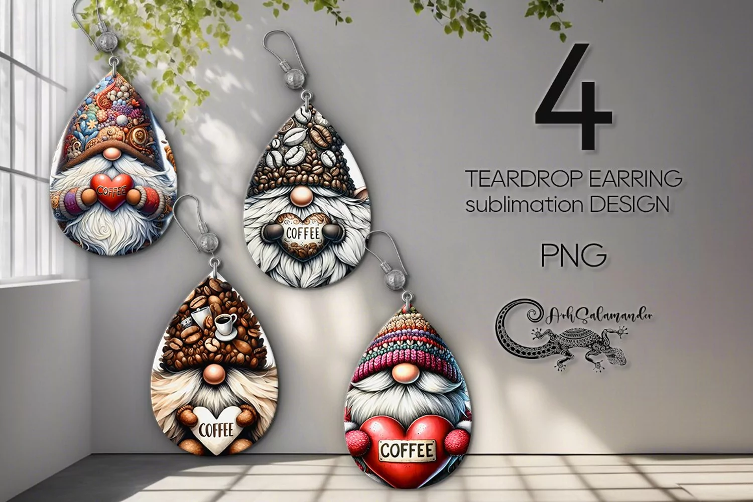 Coffee Gnome | 4 Teardrop earring Sublimation designs PLUS2