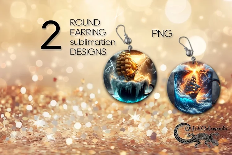Create amazing sublimation crafts with beautiful Fantasy ship | 2 marine Round earring Sublimation designs, PNG