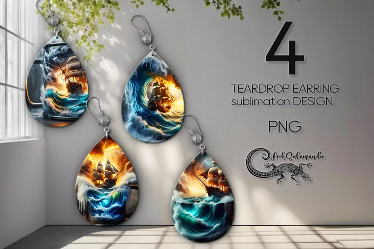 Fantasy ship | 4 Magic Sublimation Teardrop Earring designs2