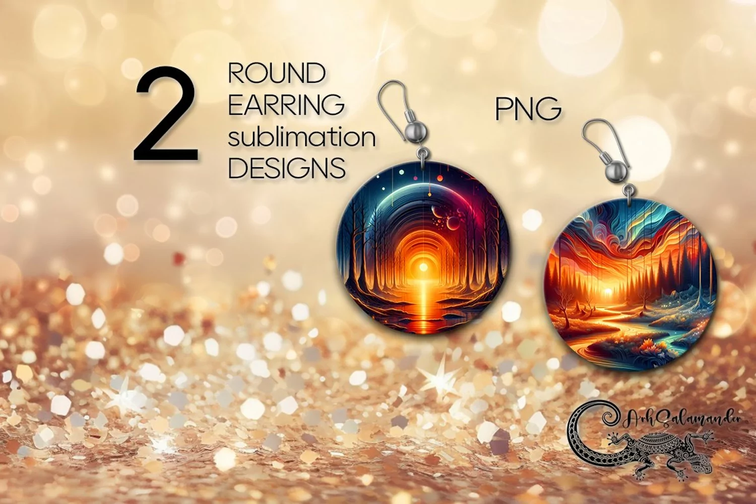Create amazing sublimation crafts with beautiful Fantasy landscape | 2 Round earring Sublimation designs, PNG