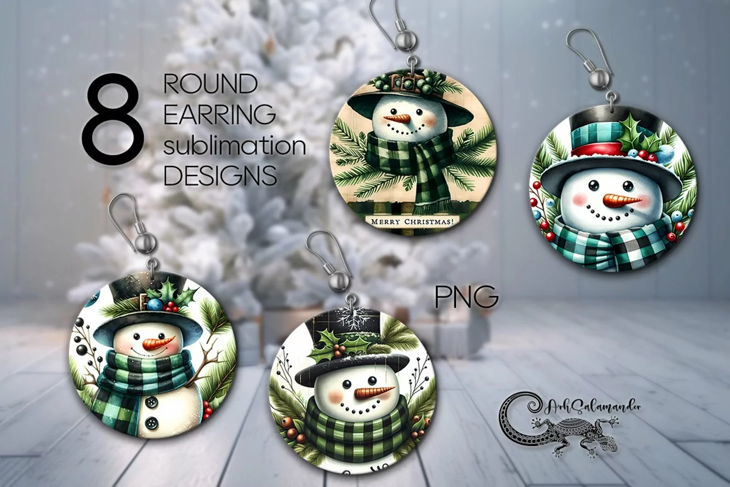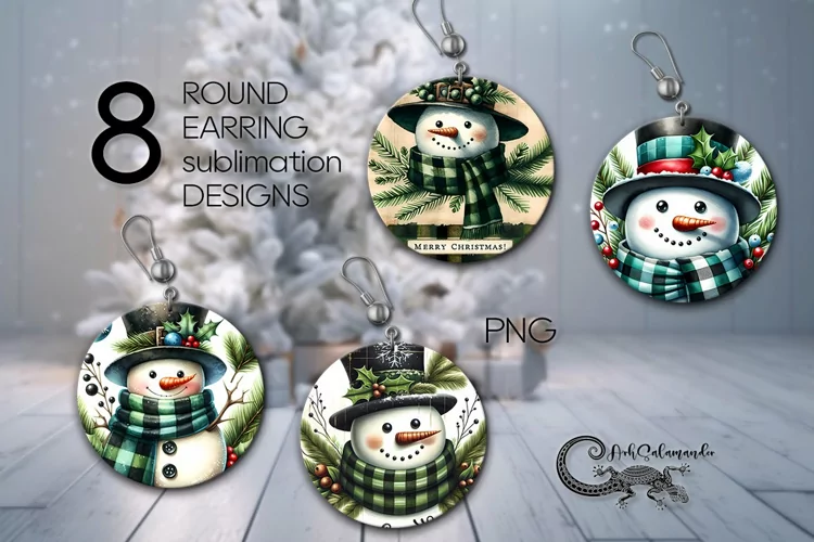 Create amazing sublimation crafts with beautiful Christmas snowman | 8 Round earring Sublimation designs, PNG