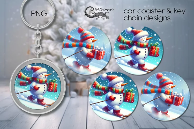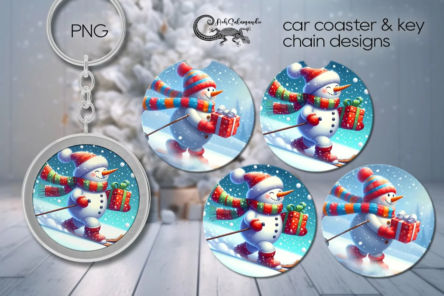 Christmas snowman | winter Car coaster & key chain deisgn P3 example image 1