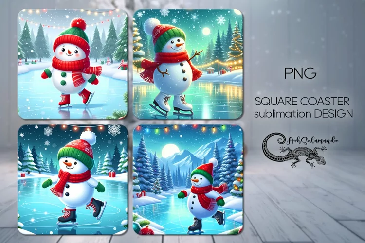 Christmas snowman | 4 winter square coaster sublimation