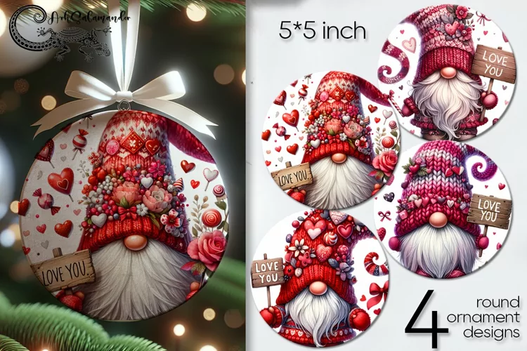 Similar Design Products to Valentine gnome| round ornaments sublimation designs2