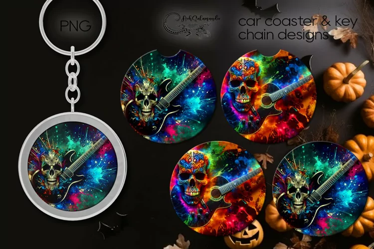 Similar Design Products to Music & skulls | Halloween Car coaster & key chain design P4