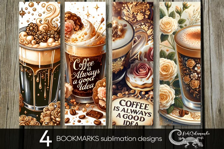 Similar Design Products to Watercolor Coffee | 4 bookmarks sublimation designs PLUS2