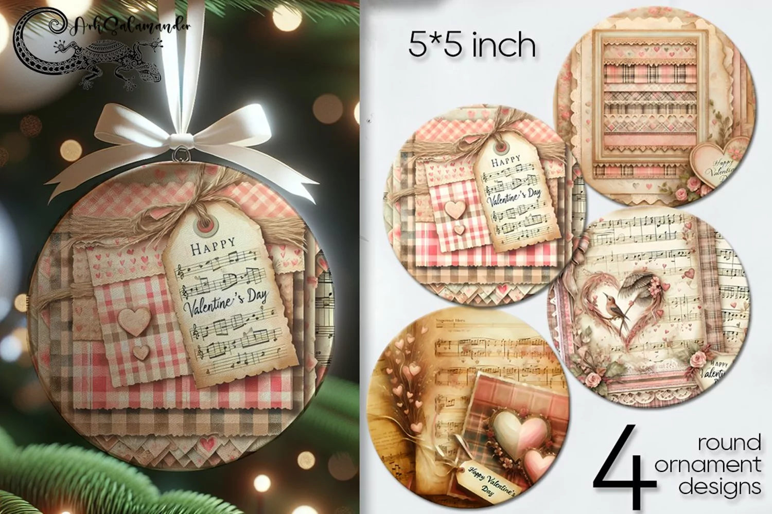 Vintage design | Valentine round ornaments sublimation PL2