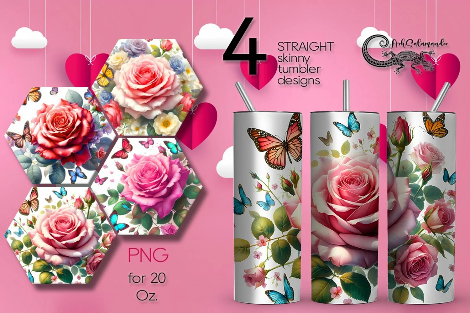 Valentine rose | Skinny tumbler Sublimation design PLUS2