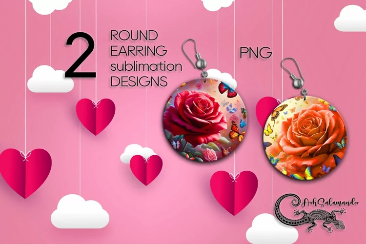 Create amazing sublimation crafts with beautiful Roses in space | Round earring sublimation design bundle, PNG