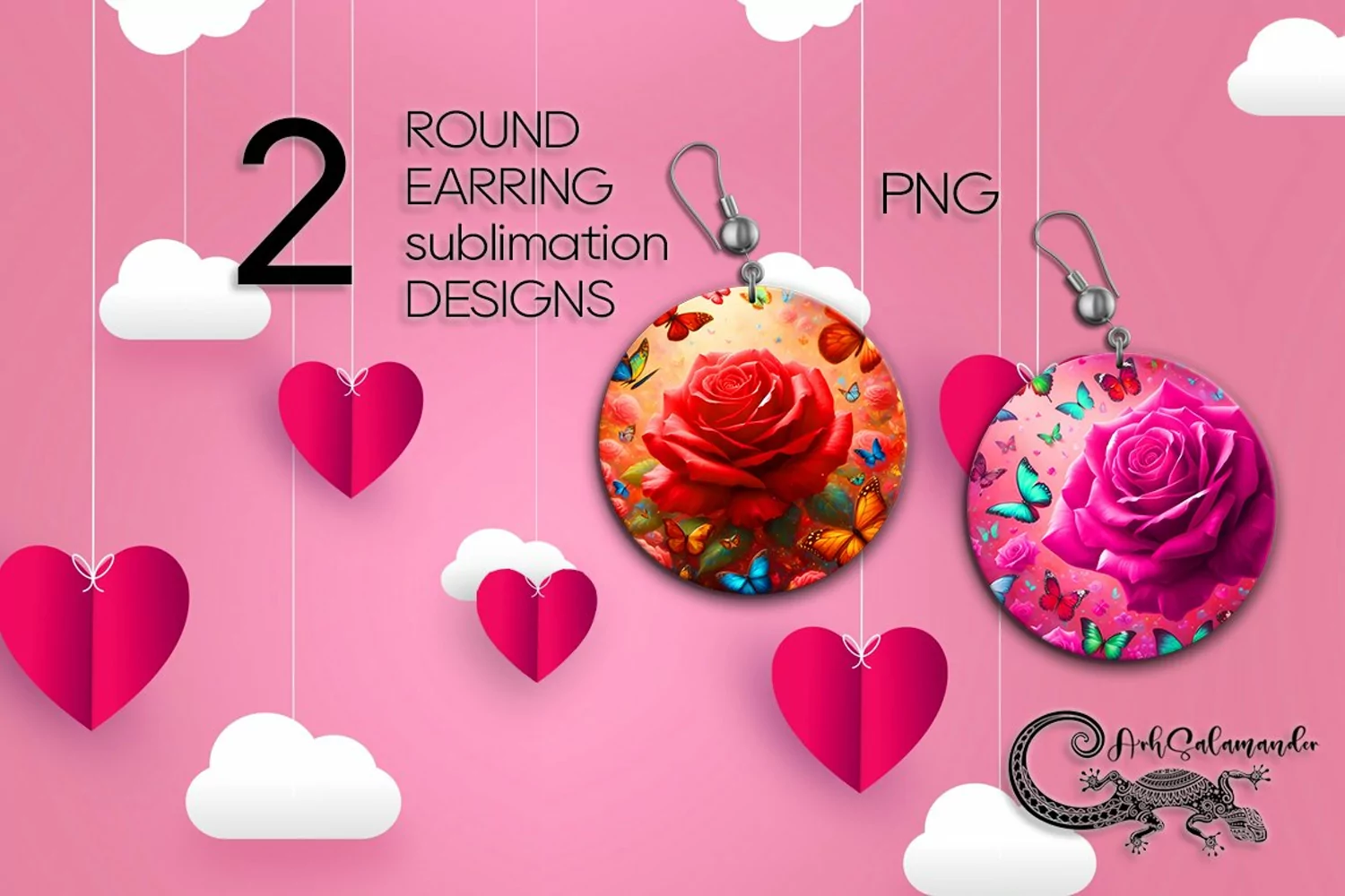 Create amazing sublimation crafts with beautiful Roses in space | Round earring sublimation design bundle, PNG