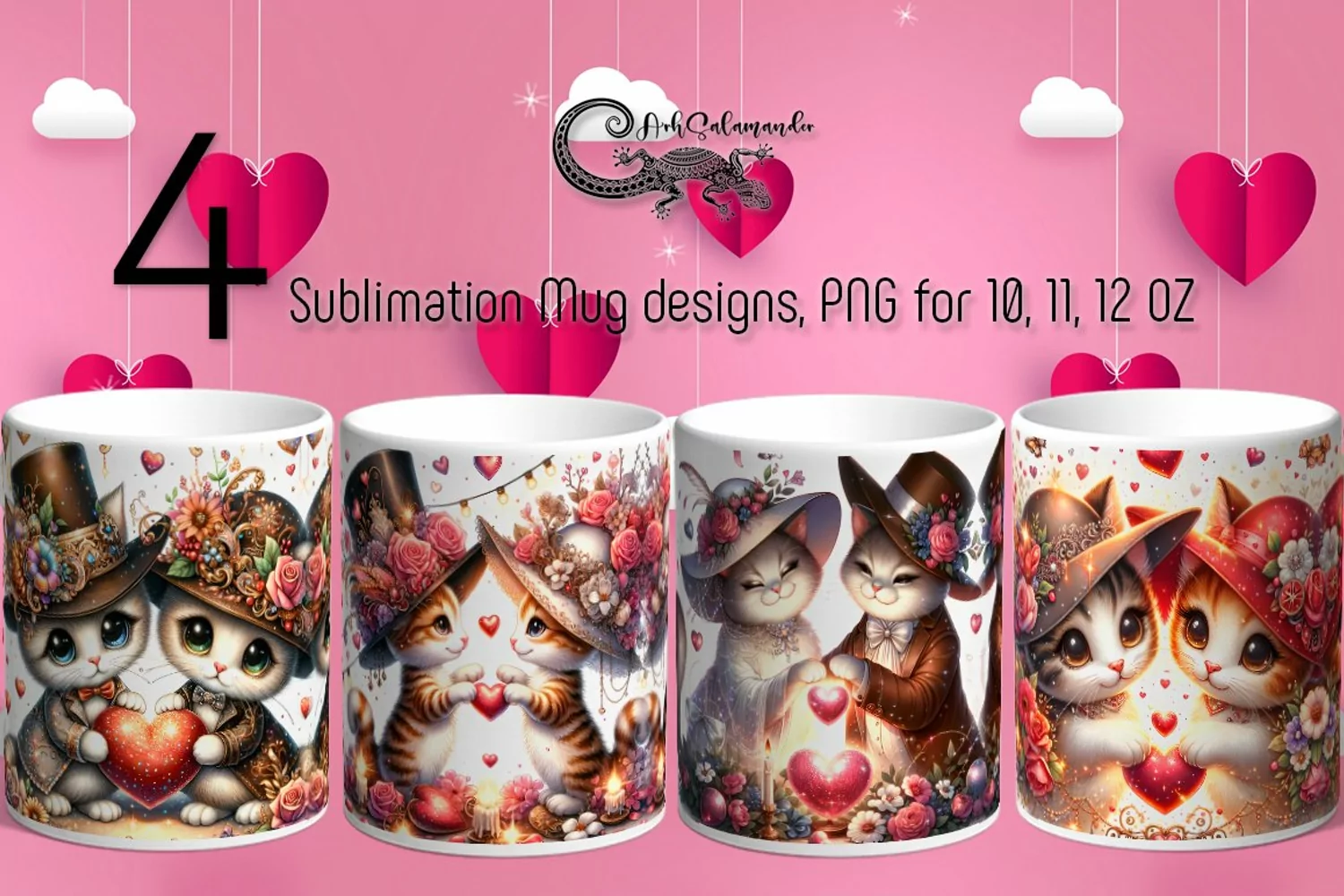 Valentine animals | 4 cat mug love watercolor designs