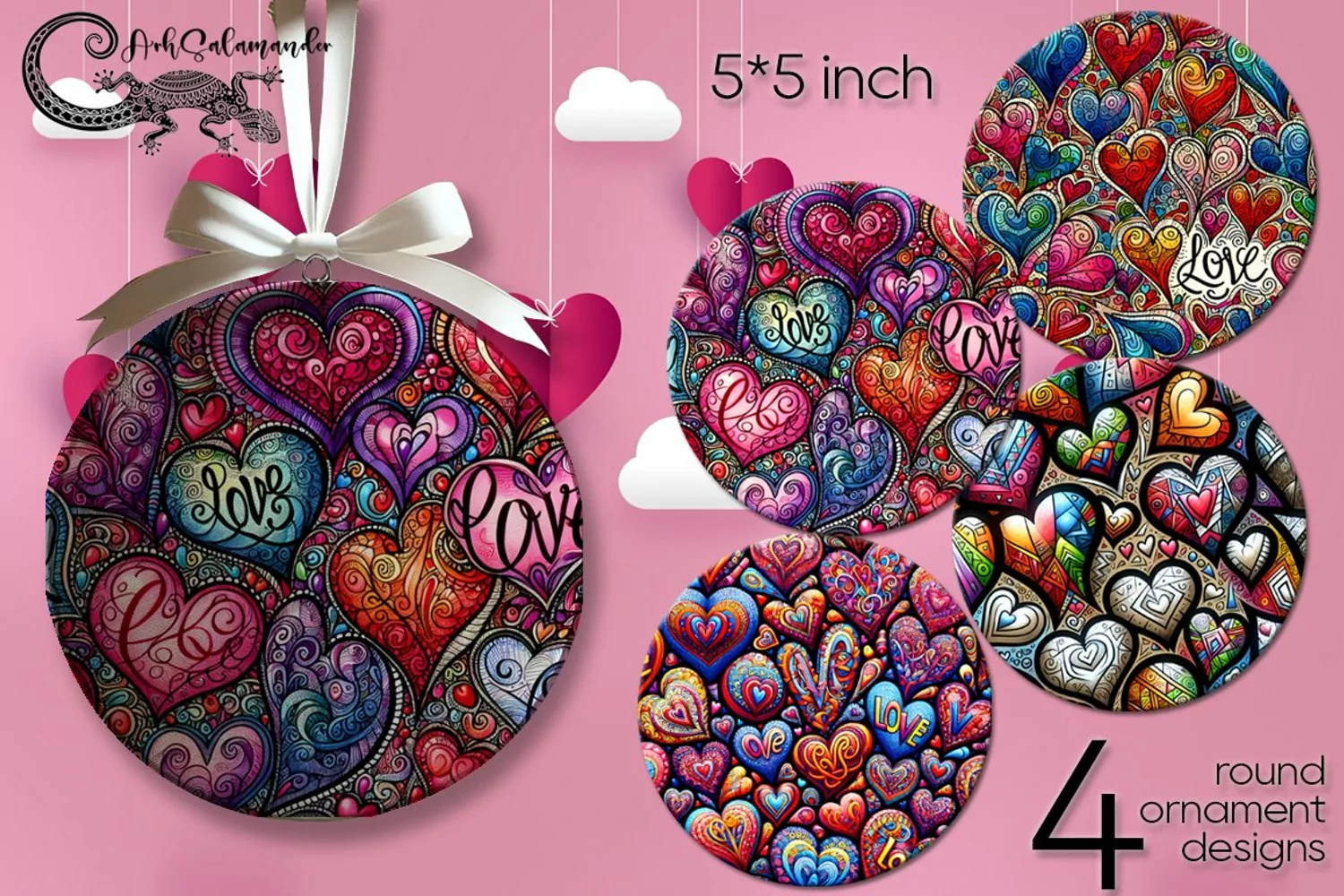 Valentine hearts | round ornaments sublimation design PL2