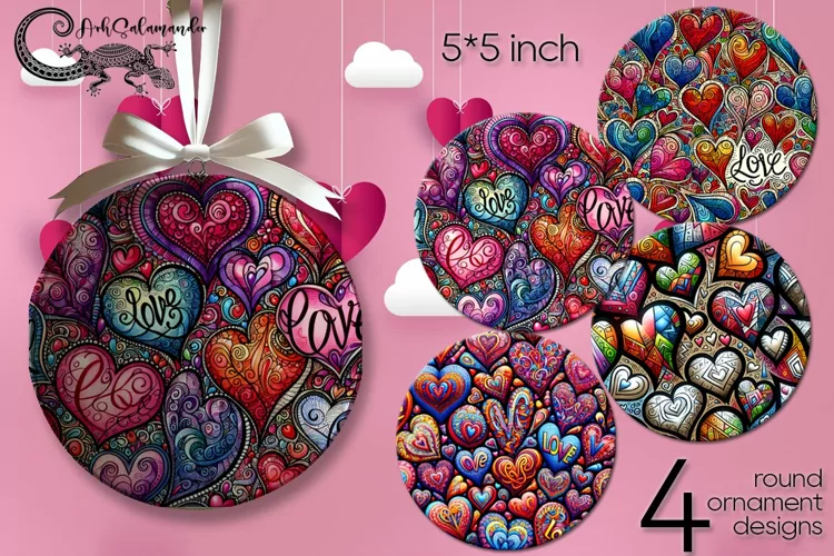 Similar Design Products to Valentine hearts | round ornaments sublimation design PL2