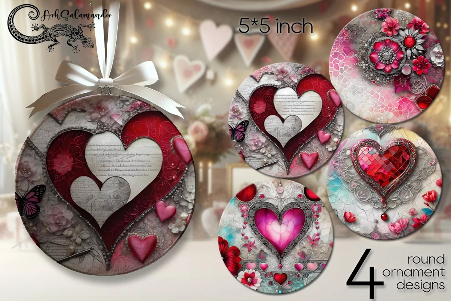 Vintage hearts | round ornaments sublimation design PL