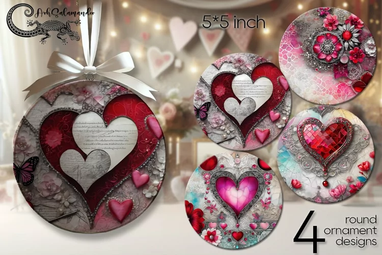 Similar Design Products to Vintage hearts | round ornaments sublimation design PL