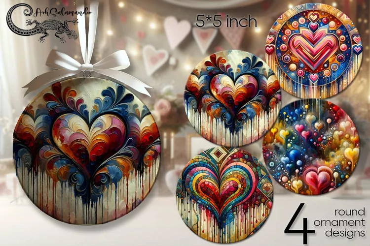 Boho hearts | round ornaments sublimation design PL2