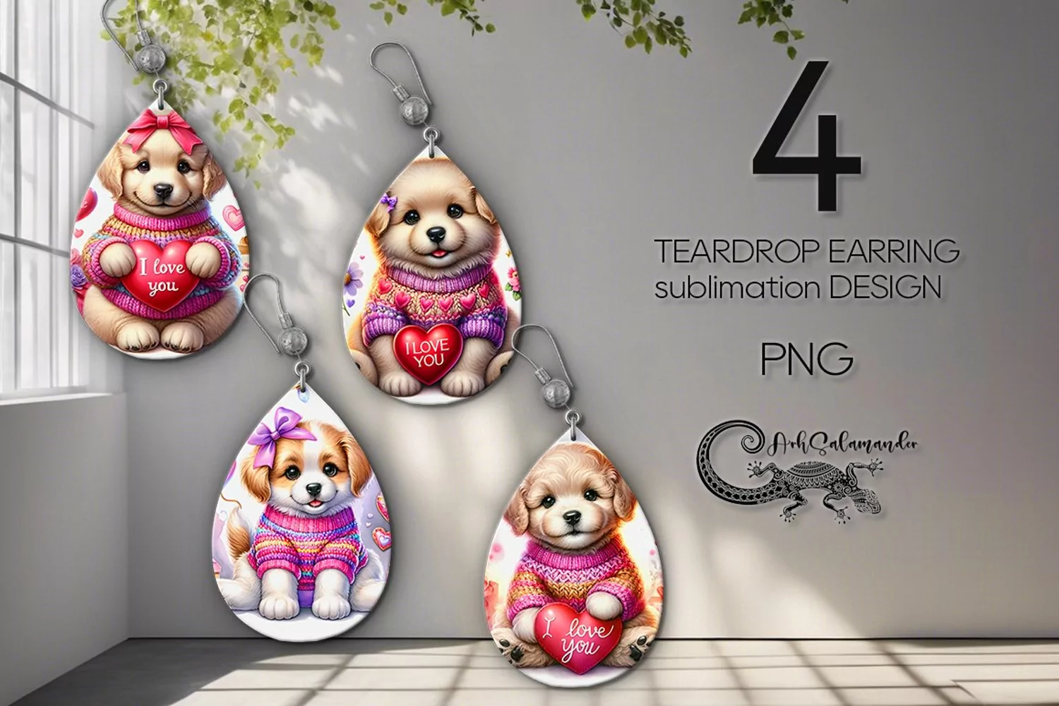 Valentine puppy | teardrop earring sublimation designs