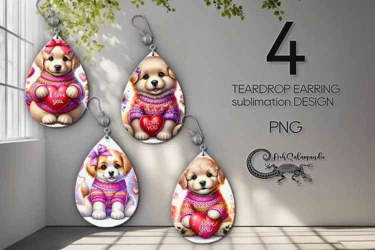Valentine puppy | teardrop earring sublimation designs example image 1
