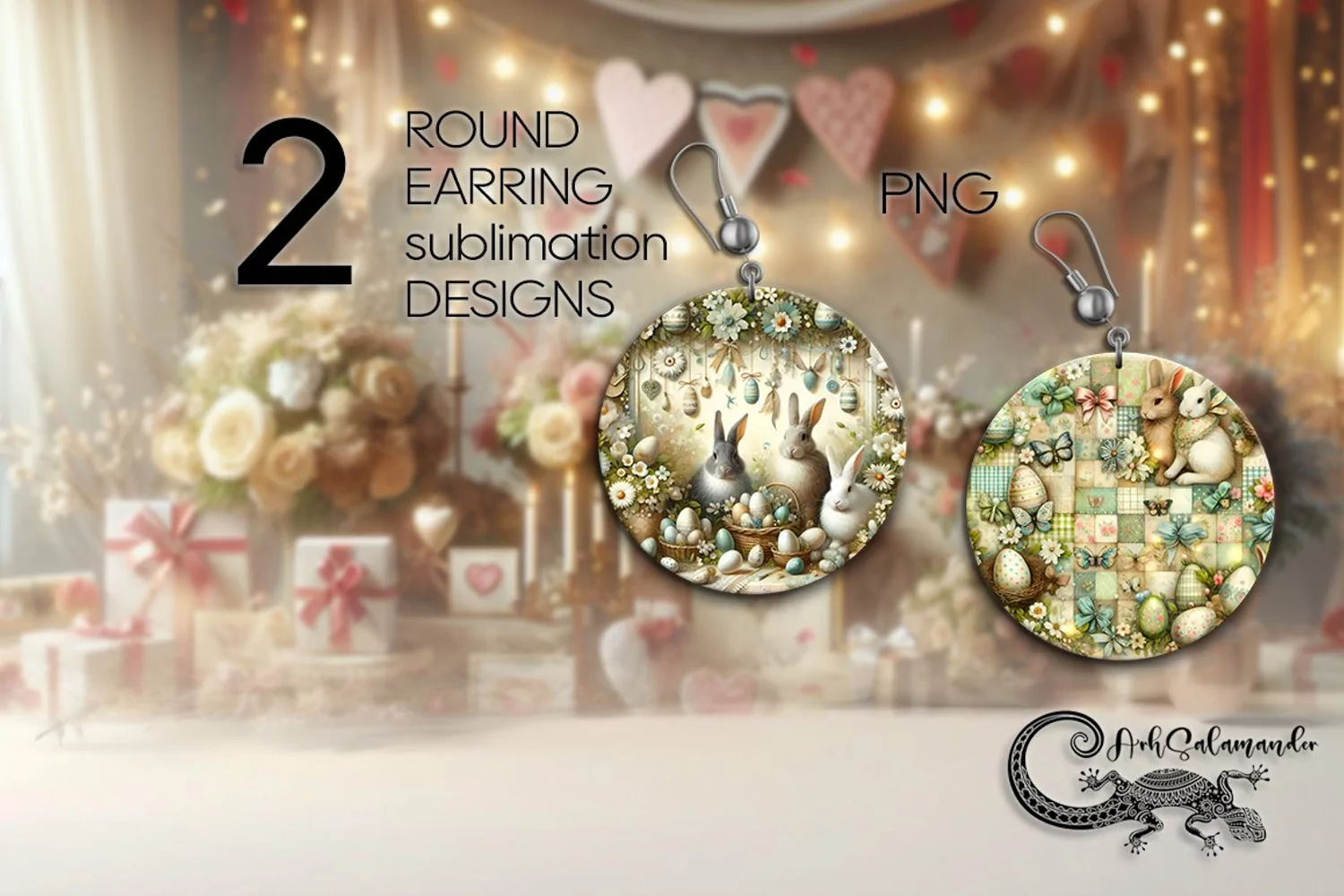 Vintage Easter | Retro Round Earring Sublimation designs PL3