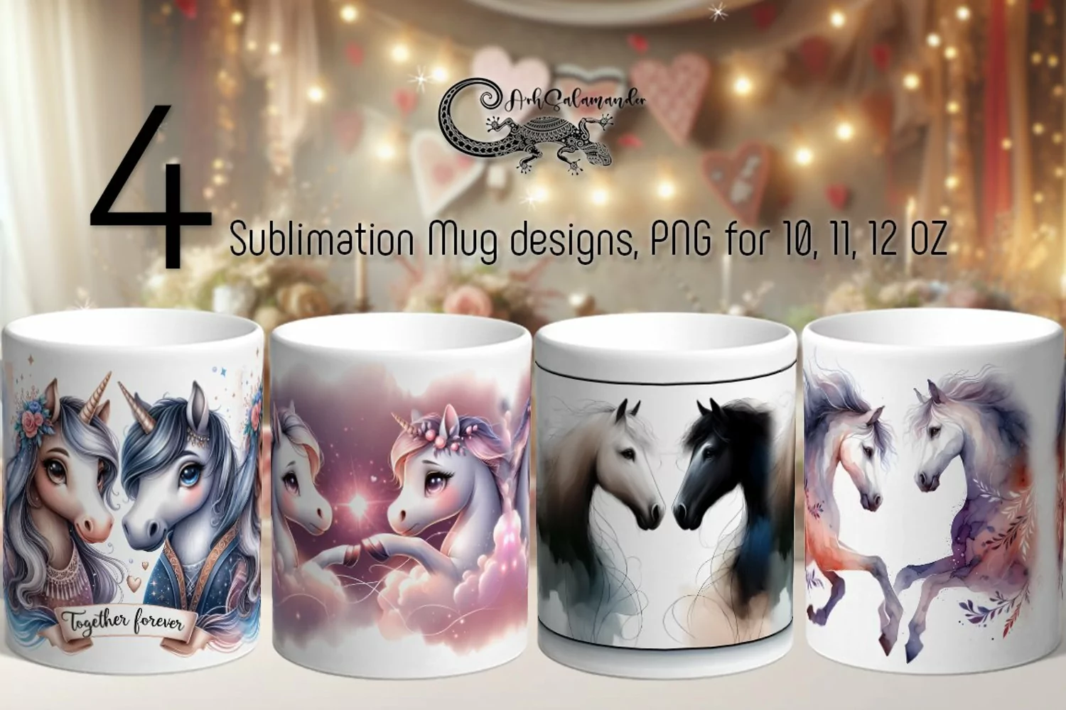 Valentine animals | cute horse mug sublimation design PL