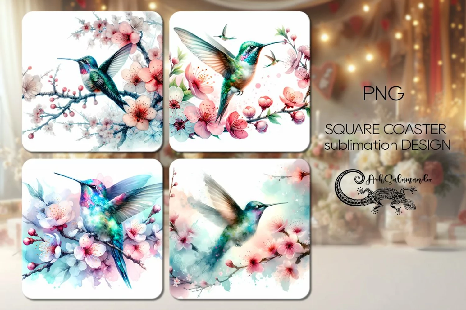 Spring hummingbird | 4 square coaster sublimation designs PL