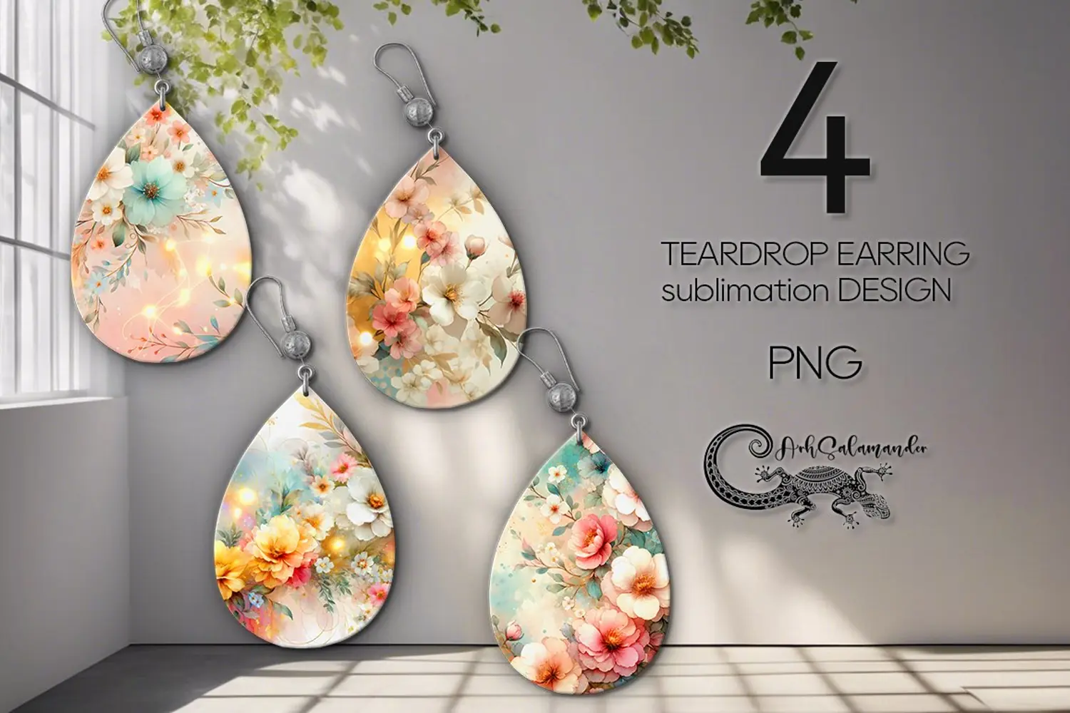 Watercolor Spring | Sublimation Teardrop earring design P2