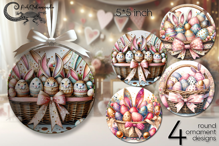 Easter eggs | 4 round ornaments sublimation designs P