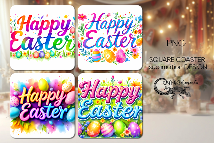 Happy Easter | 4 square coaster sublimation designs P