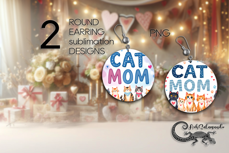 Cat lovers | Cartoon style Round earring sublimation PL2 example image 1
