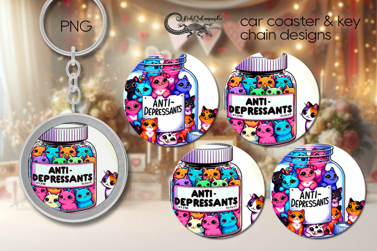 Colorful Cats | Cartoon Car coaster & key chain designs PL2 example image 1