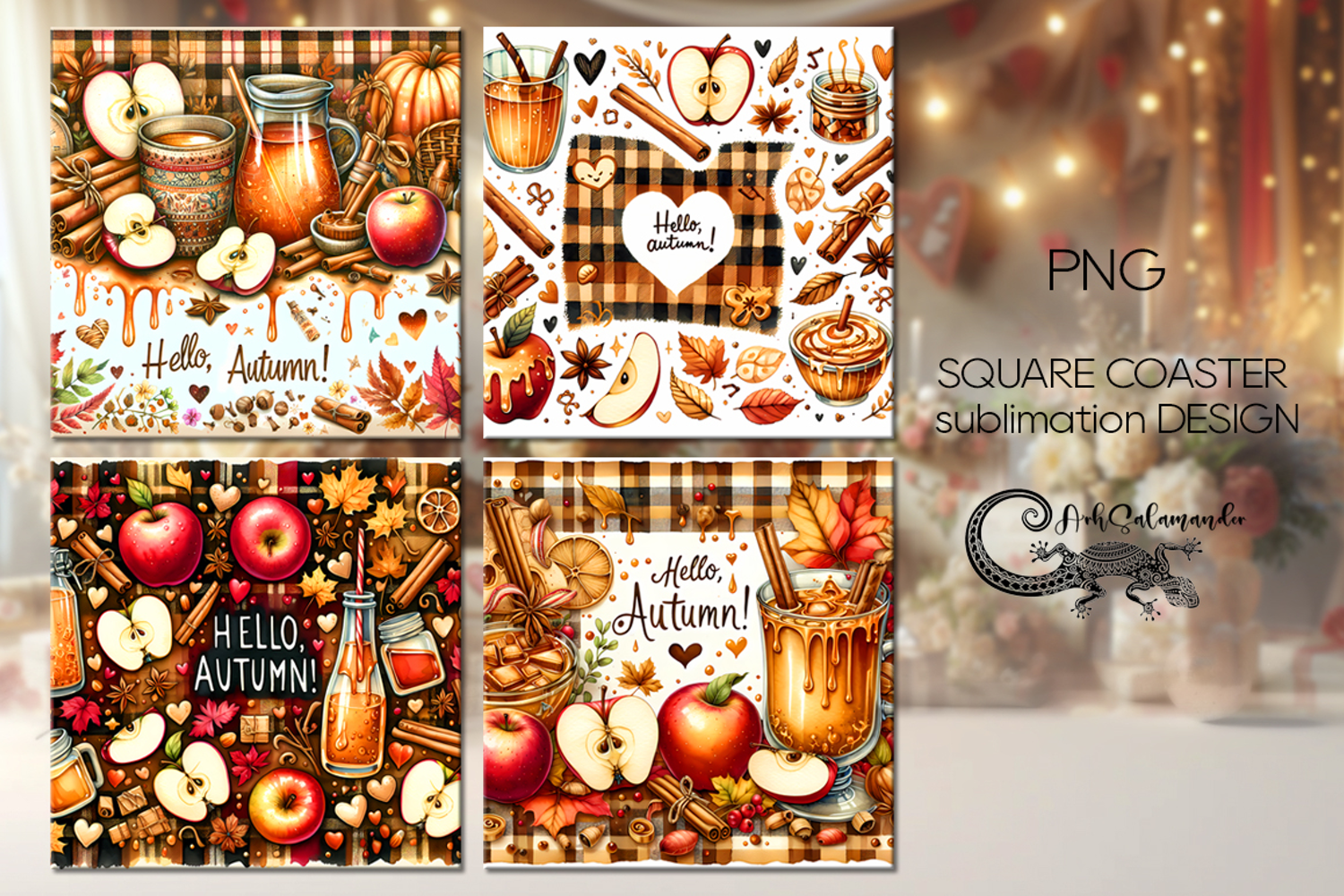 Similar Design Products to Autumn vibes | fall square coaster sublimation design P2