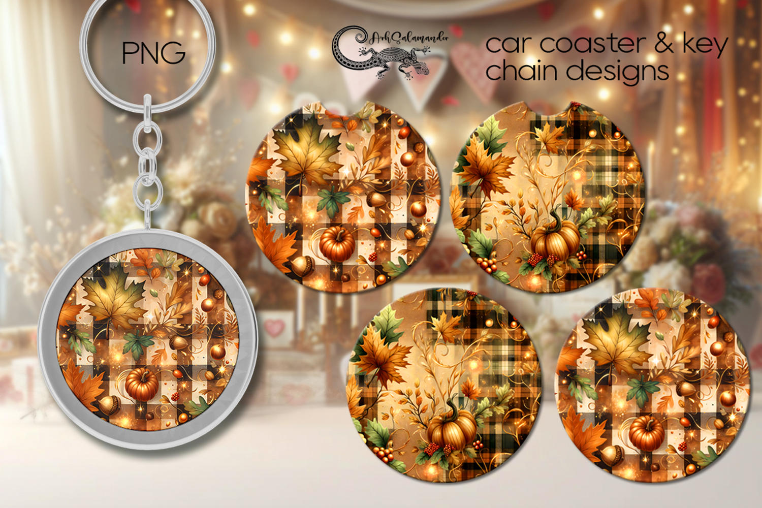 Autumn Fall Coaster Autumn Forest Autumn Design Fall Sublimation Car Coaster Design Car Coaster Key Chain Bundle Autumn Coaster