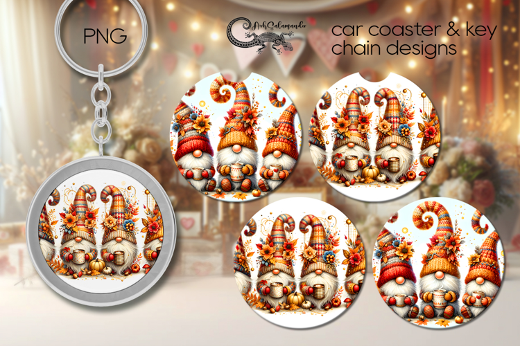Similar Design Products to Autumn gnome | Fall Car coaster & key chain designs, PL2