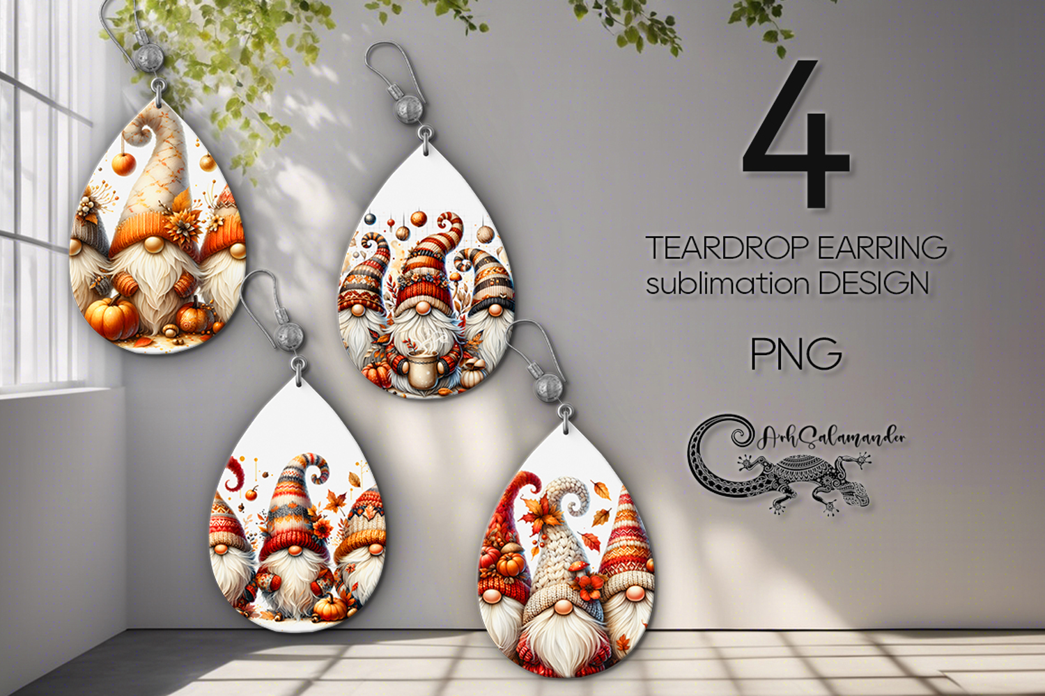 Autumn gnome | 4 Teardrop earring sublimation designs P2