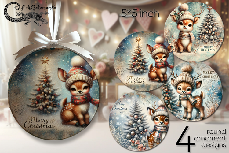 Christmas deer | retro Xmas round ornaments sublimation P2