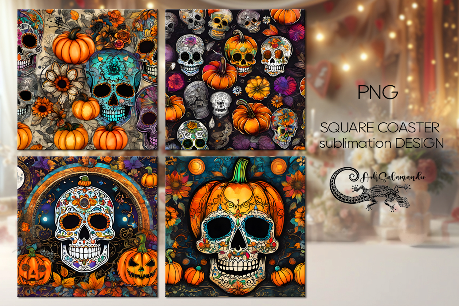 Sugar Skulls | Halloween square coaster sublimation Pl2