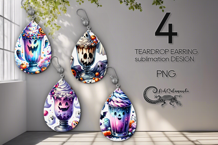 Funny Halloween character | Teardrop Earring Sublimation P2 example image 1